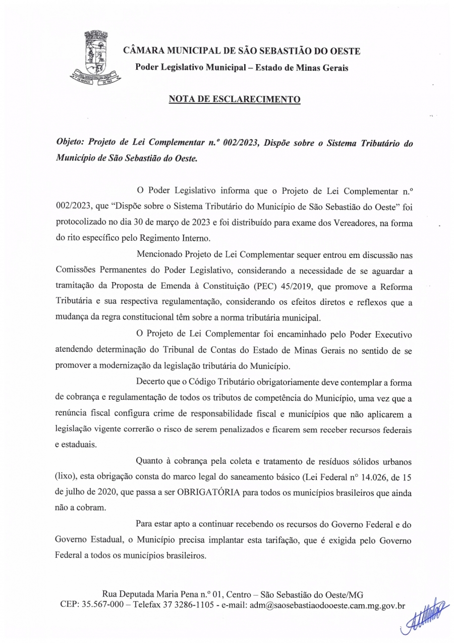 Poder Legislativo de São Sebastião do Oeste - Site Oficial - "A casa do Povo de São Sebastião do Oeste"
